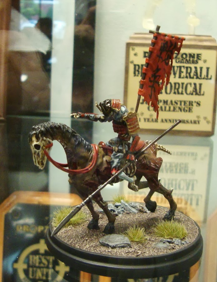 As you can see, the field was very strong for this competition. There was a matrix of categories, very similar to what I composed for NOVA Open: Historical, Fantasy, and Sci-fi, matrixed across Single, Large/Vehicle, and Unit. I entered Fantasy Unit, Sci-fi Unit, Fantasy Single, and Fantasy Large/Vehicle. You were allowed two entries per category. My entries are the ones presented on the black display boards/plinths.